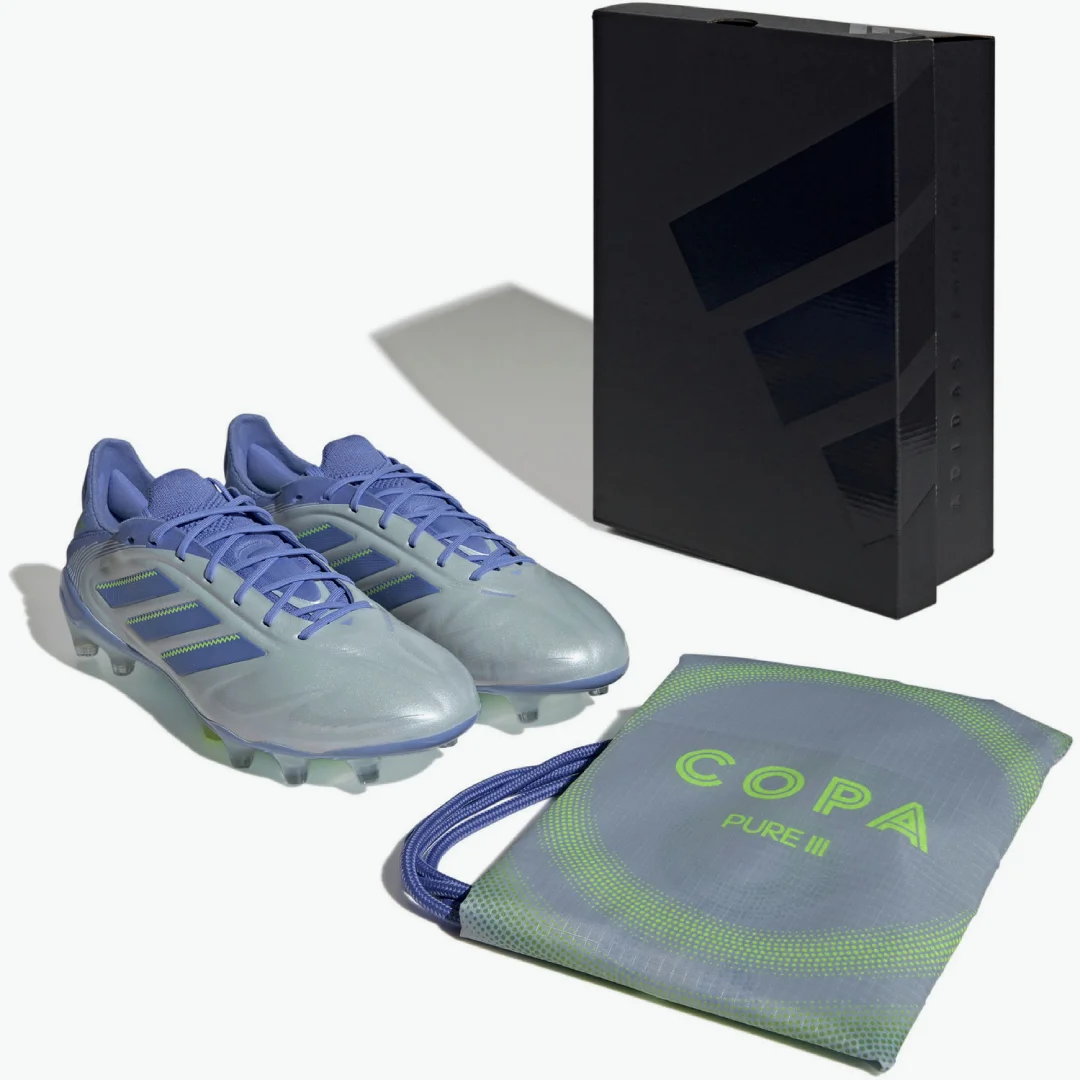 Створюйте переможні моменти матчу з adidas Copa Pure 3 Elite Leather FG кольору Halo Blue/Blue Fusion/Lucid Lemon – бутсами для гравців на полі.