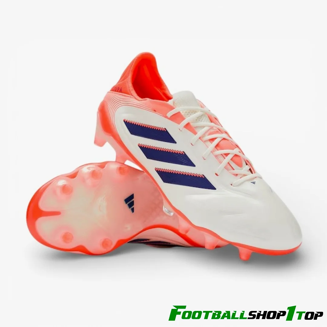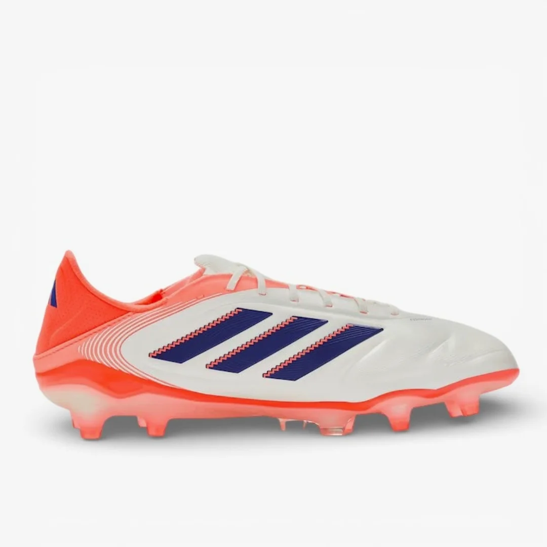Створюйте переможні моменти матчу з adidas Copa Pure 3 Elite Leather FG кольору Off White/Lucid Blue/Signal Coral – бутсами для гравців на полі.