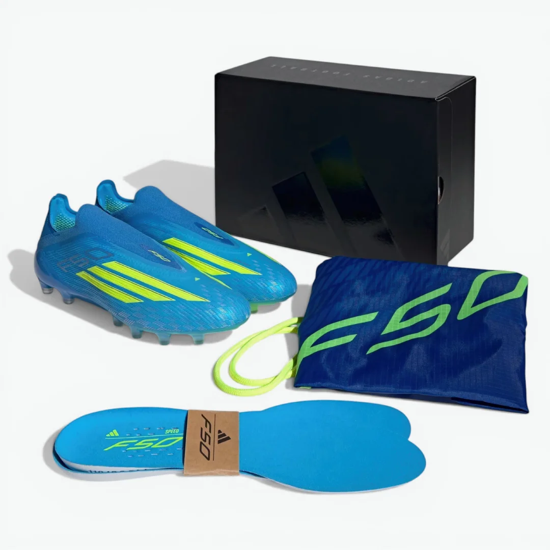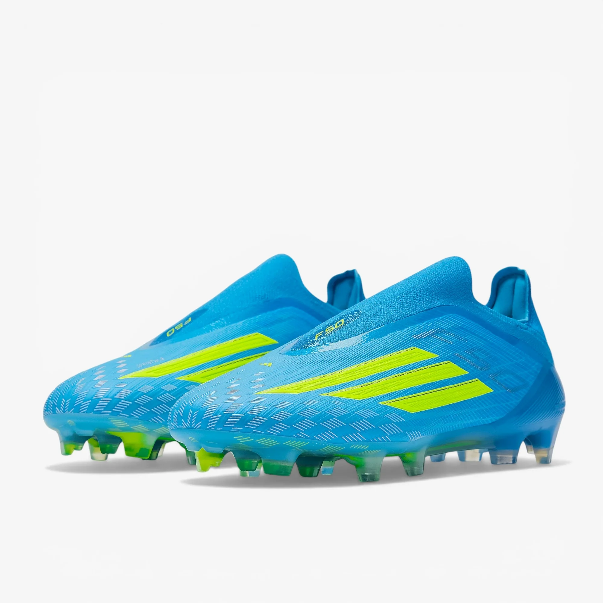 Переосмисліть швидкість у футбольних бутсах adidas F50 Elite Laceless FG кольорів Lucid Ray Blue/Team Solar Yellow/Lucid Aquamarine.