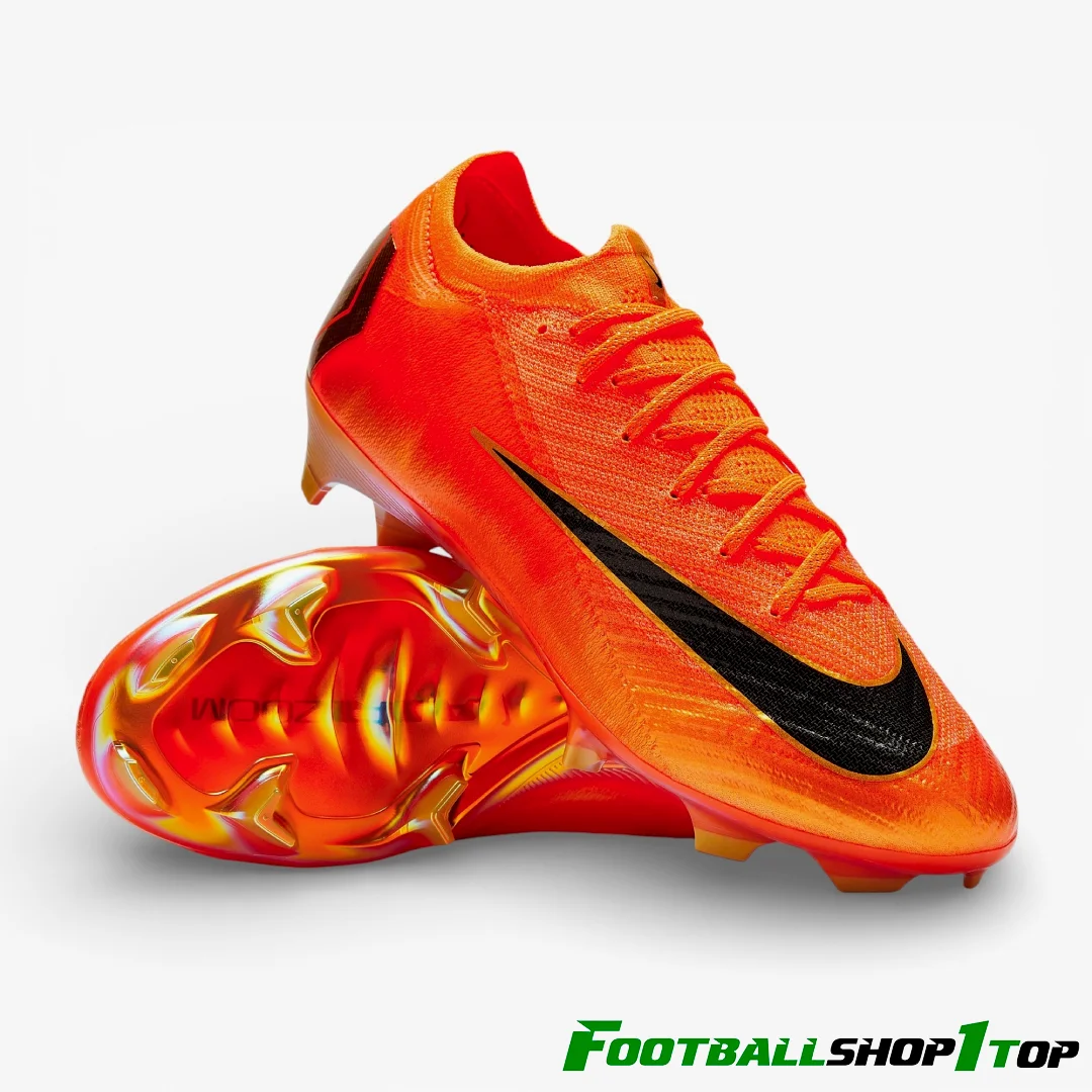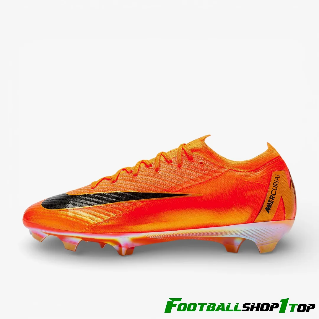 Знову і знову проносьте захисників у футбольних бутсах Nike Air Zoom Mercurial Vapor 16 Elite SE FG кольору Total Orange/Metallic Vivid Gold. Знайомо? Ця кольорова гама «Deja vu» відзначає історію помаранчевого кольору в серії Mercurial, запозичуючи елементи з класичних моделей, таких як Mercurial 360 та CR7 «Forged for Greatness».