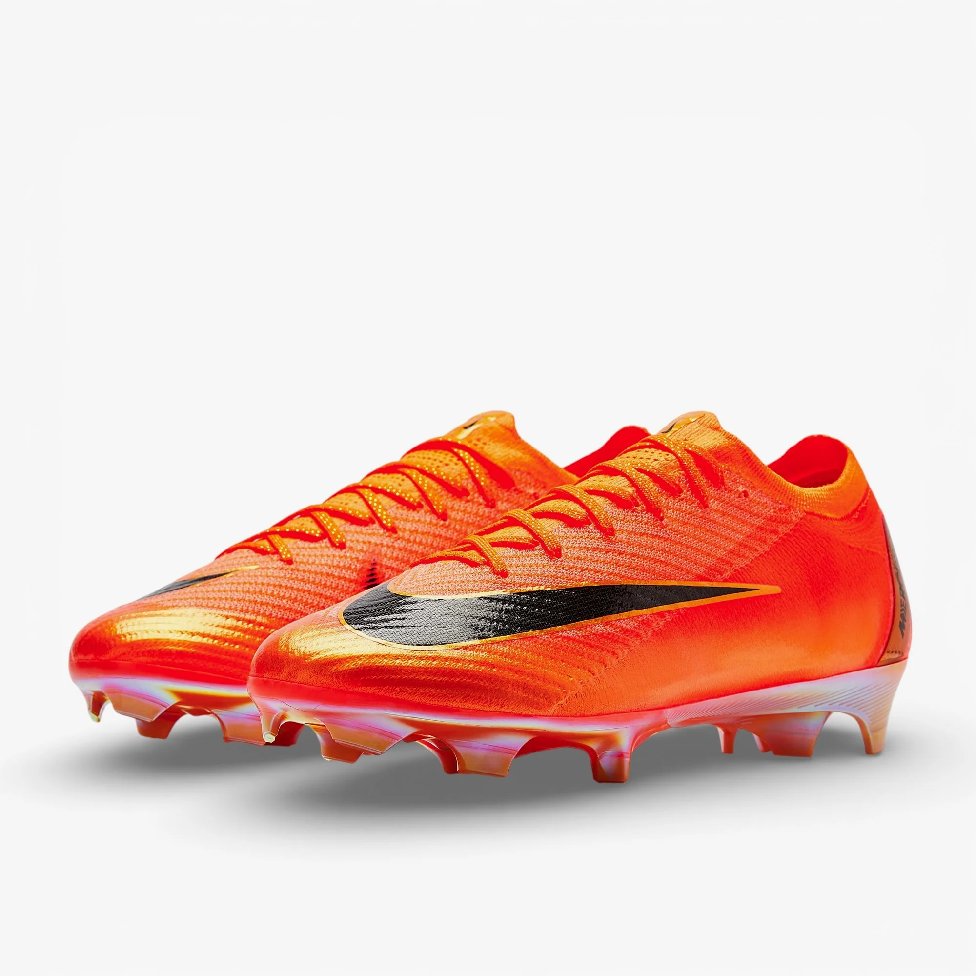 • Дизайн містить елементи помаранчевих моделей Mercurial минулого, включаючи галочку та шеврон «M» Mercurial 360 2018 року та градієнтний перехід CR7 2017 року «Forged for Greatness»