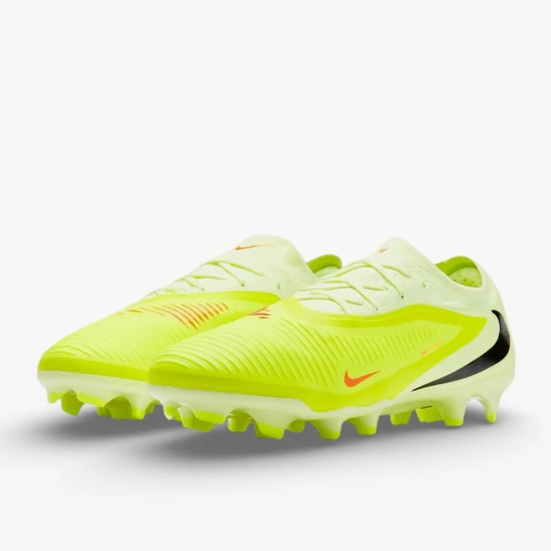 Вселяйте страх у суперників футбольними бутсами Nike Phantom 6 Pro Low FG кольорів Limelight/Hyper Crimson/Black.