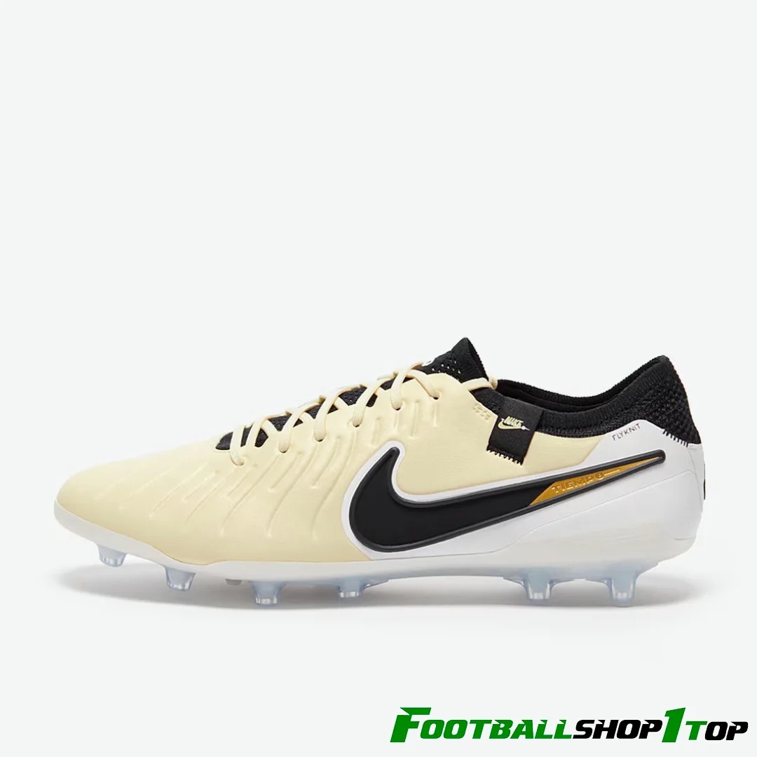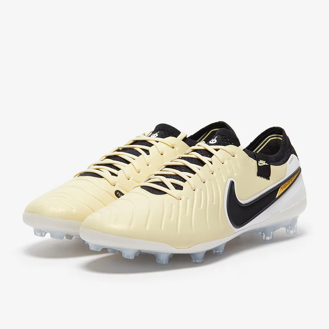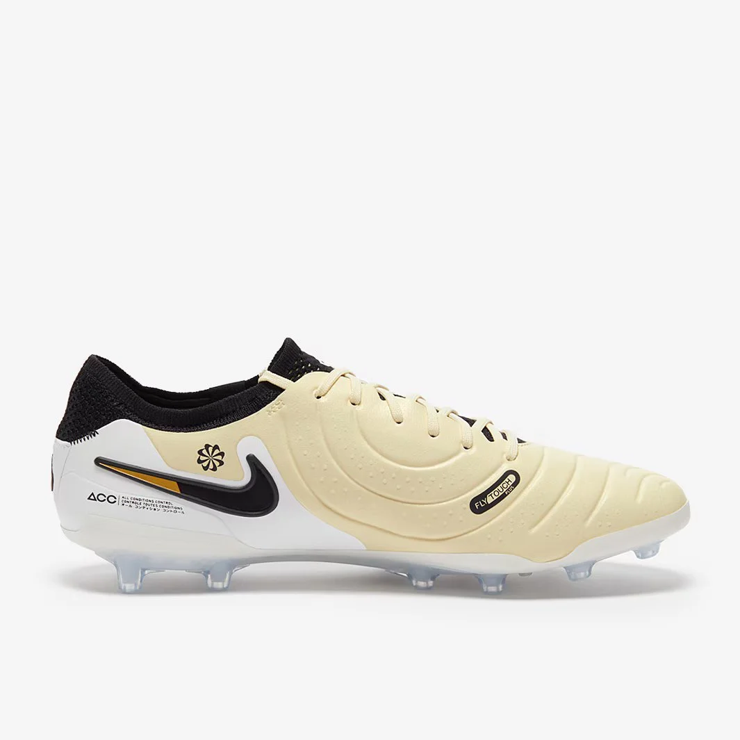 Зробіть так, щоб гра виглядала легкою, у футбольних бутсах Nike Tiempo Legend X Elite AG кольору Lemonade/Black/Mtlc Gold Coin, які мають литий, розроблений верх для легкого дотику.