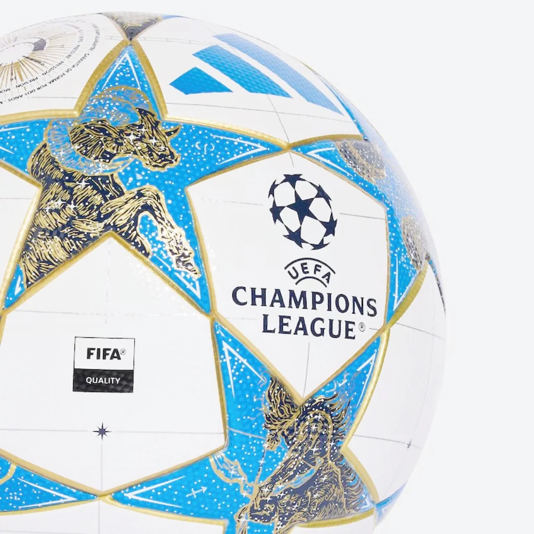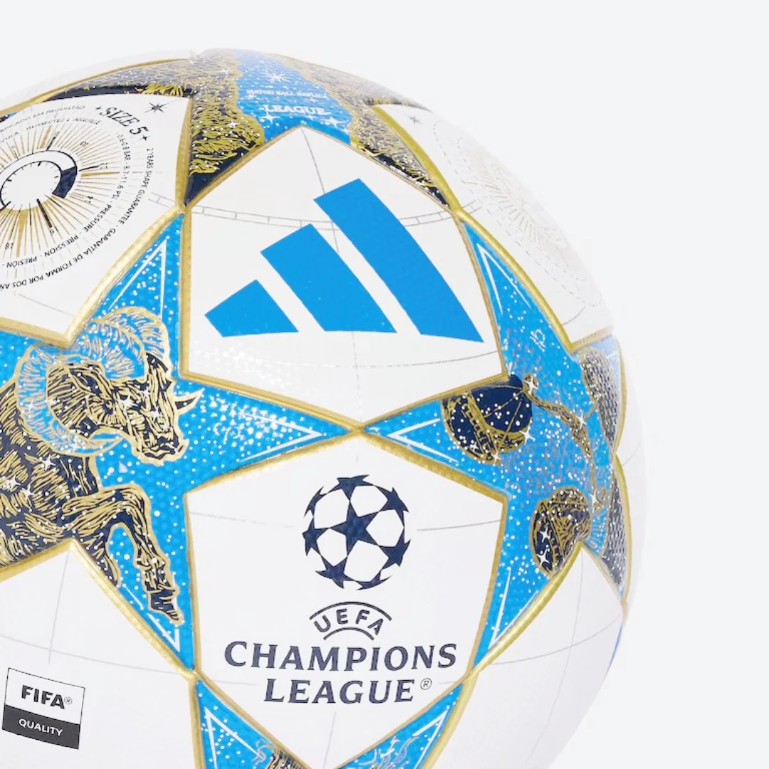 Заснований на м’ячі, який використовували професіонали у фазі Ліги чемпіонів 2025/26, м’яч adidas UCL League викликає образи елітних клубів, що освітлюють європейські вечори, від 15-разового володаря Кубка Європи “Реал Мадрид” до гігантів Прем’єр-ліги “Ліверпуль” та “Арсенал”, чемпіонів Бундесліги “Баварія” та історичних європейських грандів “Ювентус” та “Аякс”. Натхненний культовими вечірніми стартами змагань, астрономічні та небесні зображення поєднуються із зображеннями 12 зодіакальних сузір’їв, щоб стильно віддати шану красі вечорів Ліги чемпіонів. Характерні зоряні панелі та привабливі контрастні кольори покращують видимість та гарантують, що м’яч легко виділяється на полі, щоб ви могли стежити за грою за будь-яких умов, у дощ чи сонце.