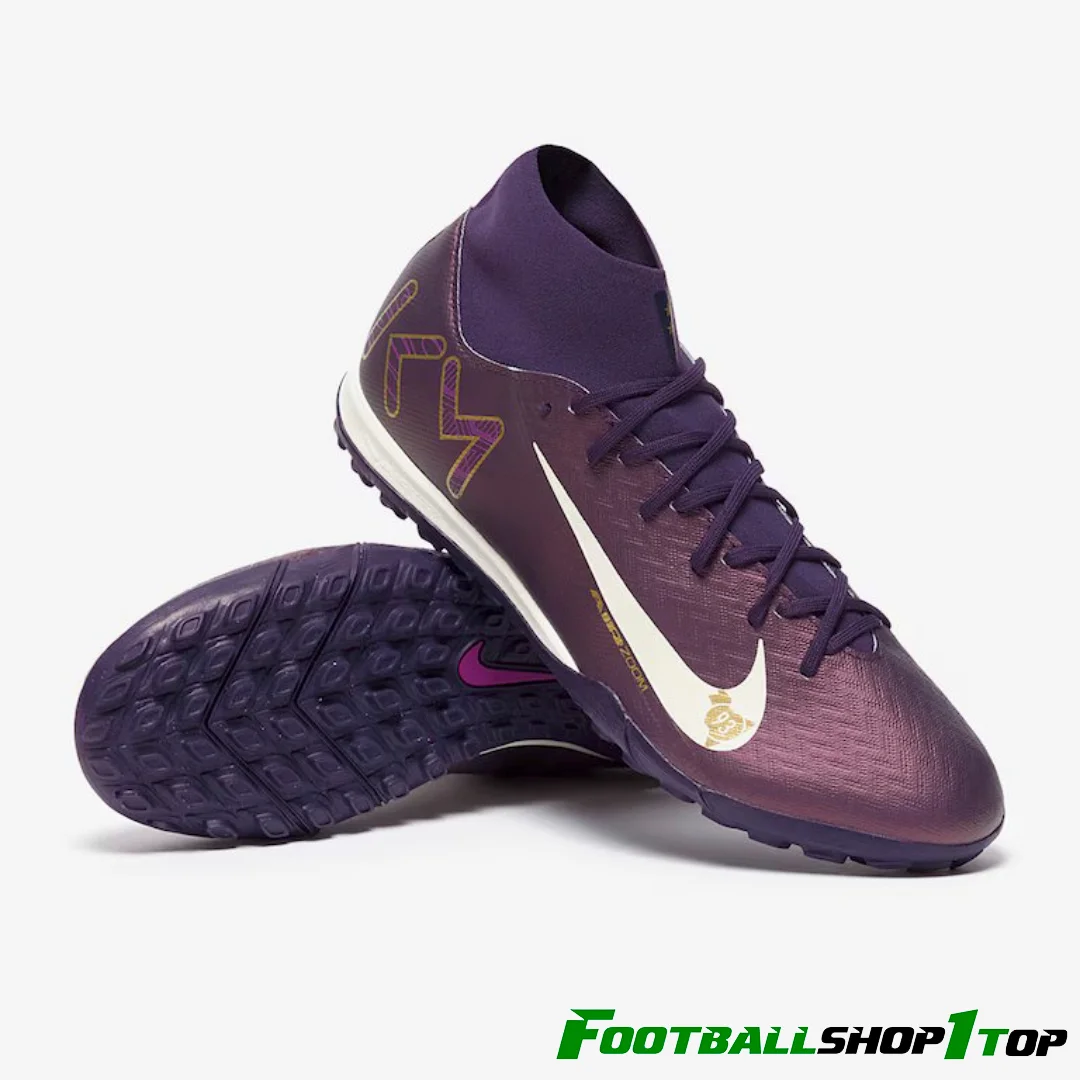Найвищий прояв швидкості. Станьте недоторканними на полі з футбольними черевиками Nike Air Zoom Mercurial Superfly 10 Academy x Mbappe TF. Коли ти такий же швидкий, як Кіліан, нереальне стає реальністю. Це фірмове видання стирає межі між світами за допомогою туманного цифрового друку та Swoosh, що змінює колір.