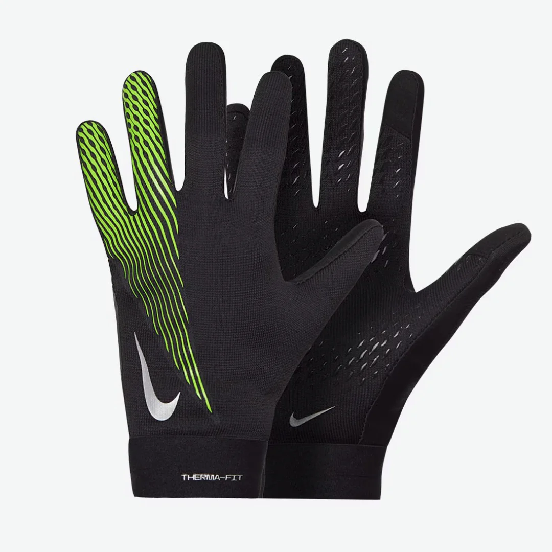 Розроблені, щоб допомогти вам показати найкращі результати в холодні зимові дні, рукавички Academy Thermafit використовують технологію Therma-FIT, яка утримує тепло та зберігає ваші руки в теплі та затишку. Чіпкі силіконові накладки на пальцях та долоні значно полегшують захоплення м’яча під дощем, що є вирішальним фактором для тих моментів відриву, коли швидкий штрафний удар або кидок можуть мати вирішальне значення. Універсальна чорна основа ідеально доповнює будь-яку форму, тому ви можете носити їх під час матчів або тренувань, а галочка Nike Swoosh додає спортивного вигляду. Еластичні манжети забезпечують щільну посадку та гарантують, що рукавички залишатимуться на місці протягом усіх 90 хвилин.